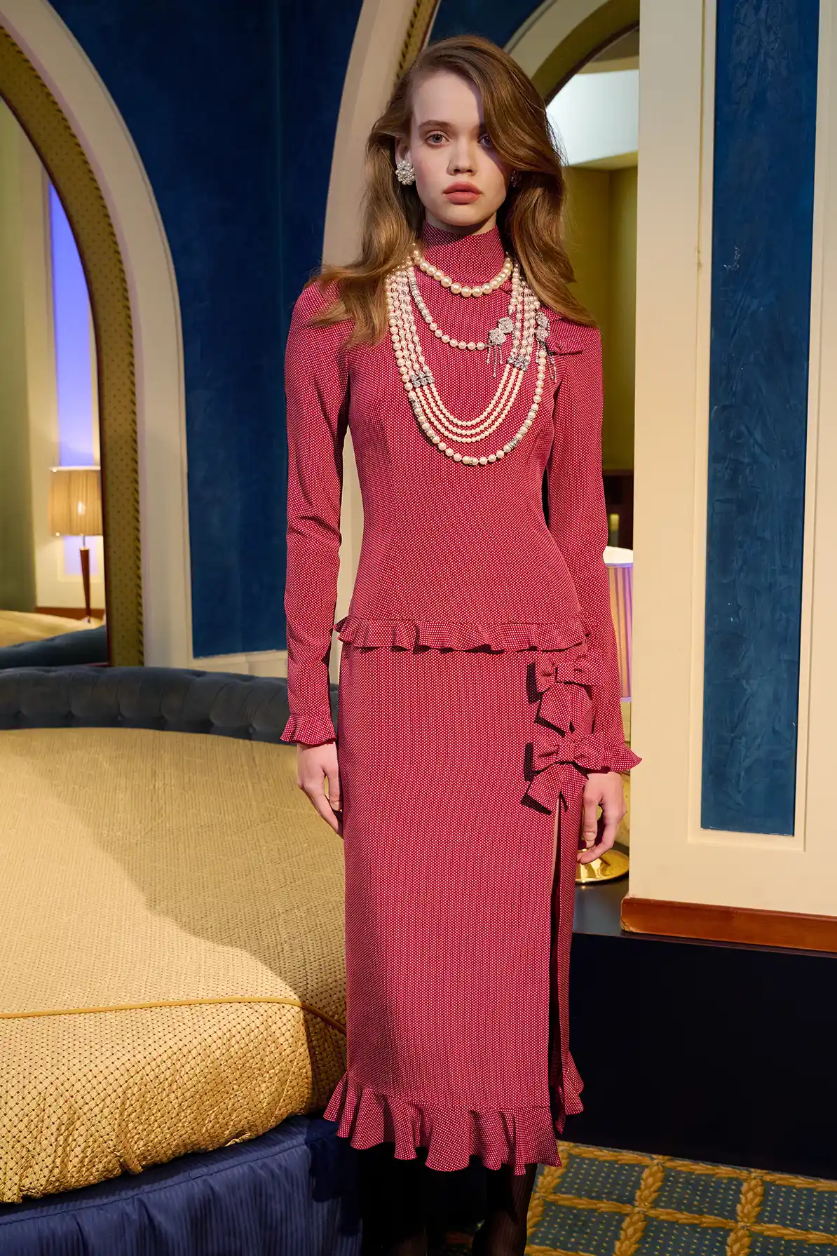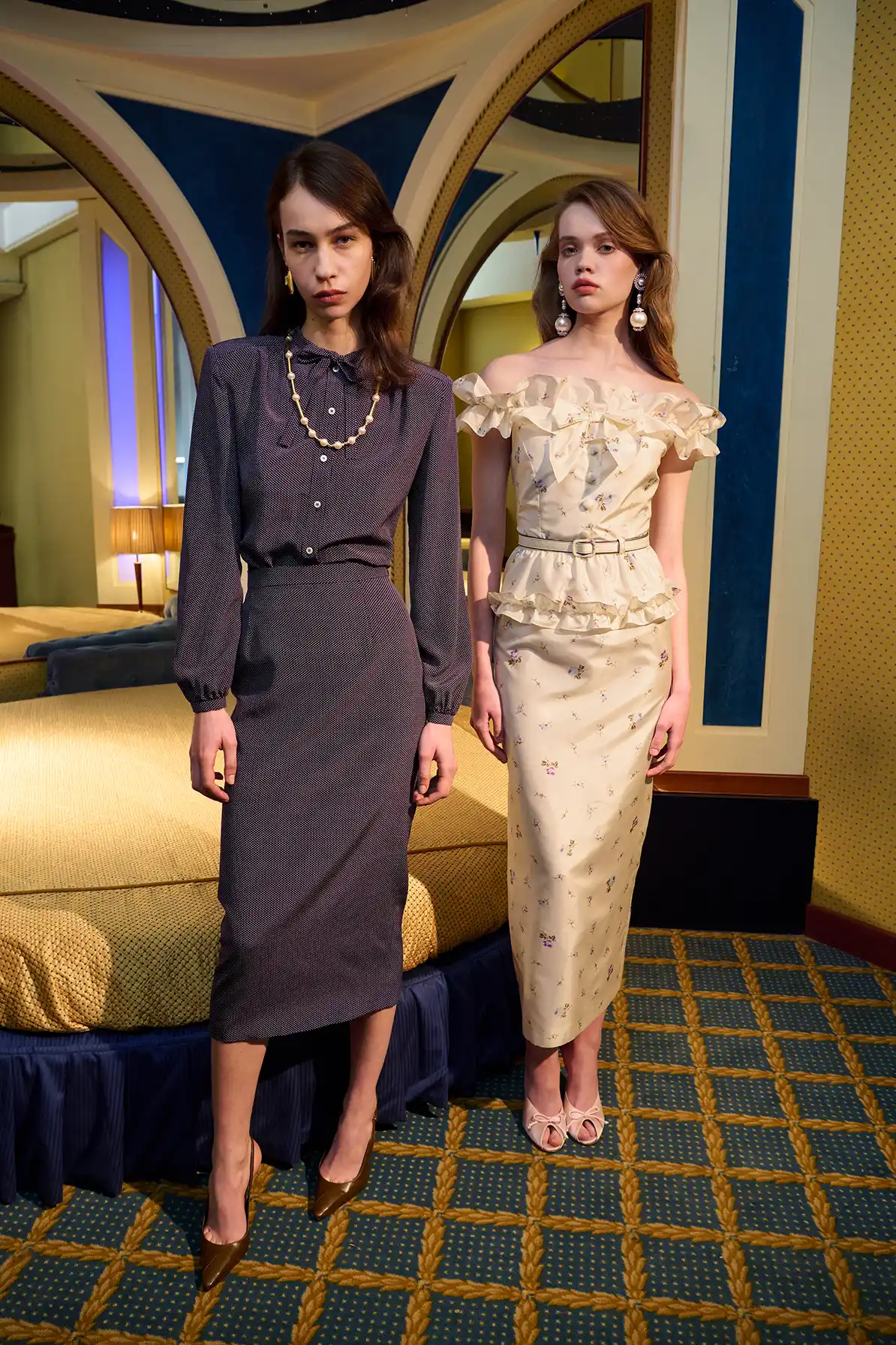 Rich has, once again, conjured a brand of femininity that would feel at home in the world of Twin Peaks — think Laura Palmer suspended between innocence and enigma. Like David Lynch’s vision of womanhood, bathed in haunting duality, Rich’s heroine exists in tension: idealised mid-century American sweetness spliced with surreal, dark romantic undertones. In subtly unsettling the very codes she embraces, Rich continues to complicate the nostalgic femininity that defines her aesthetic — and this season is no exception.
