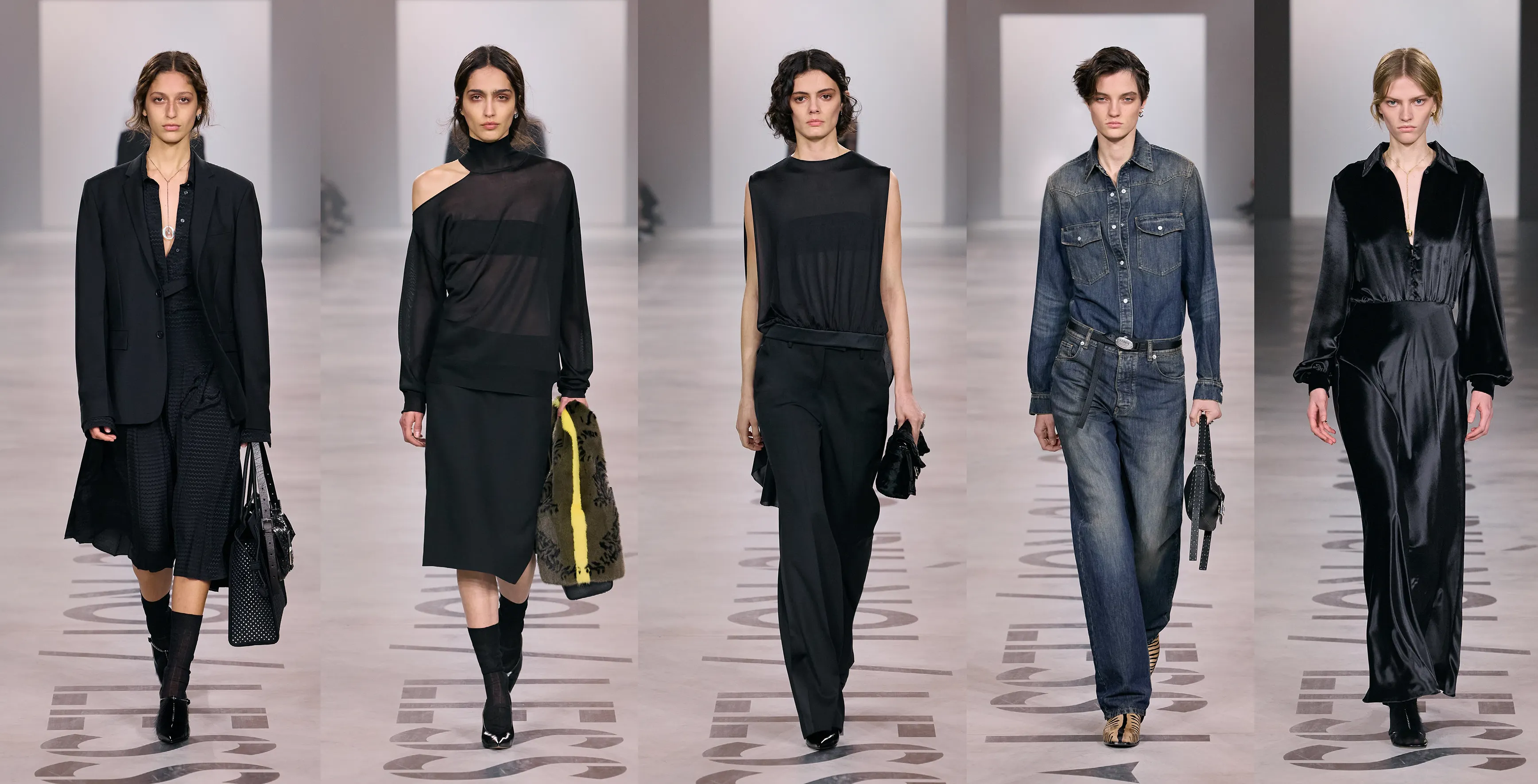 Less I, more us. Maria Grazia Chiuri’s motto for this, her first collection for FENDI.A motto that sums up the way she goes about her work and that can also be said to characterize the creative coherence of the five Fendi sisters and the history of the brand.