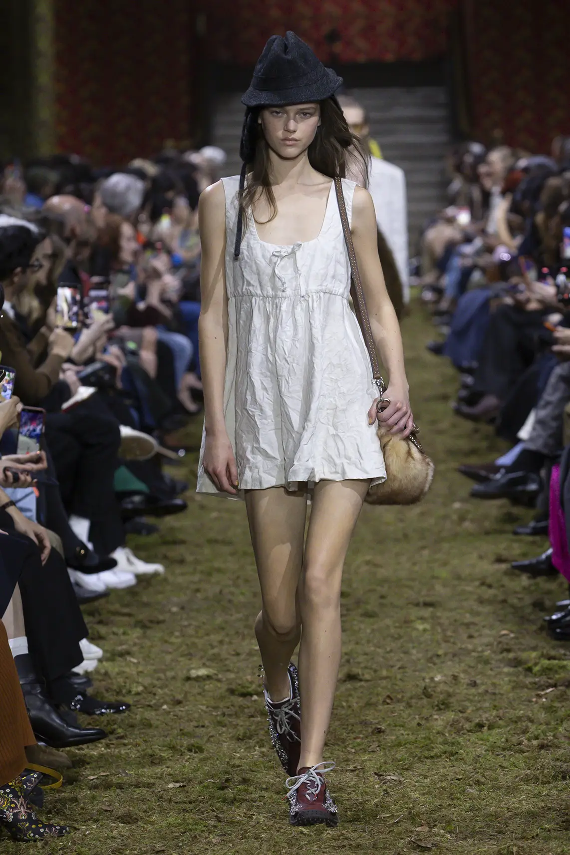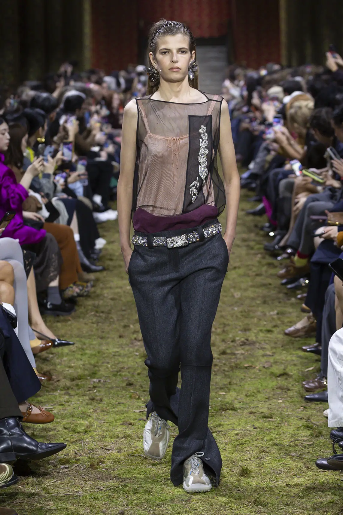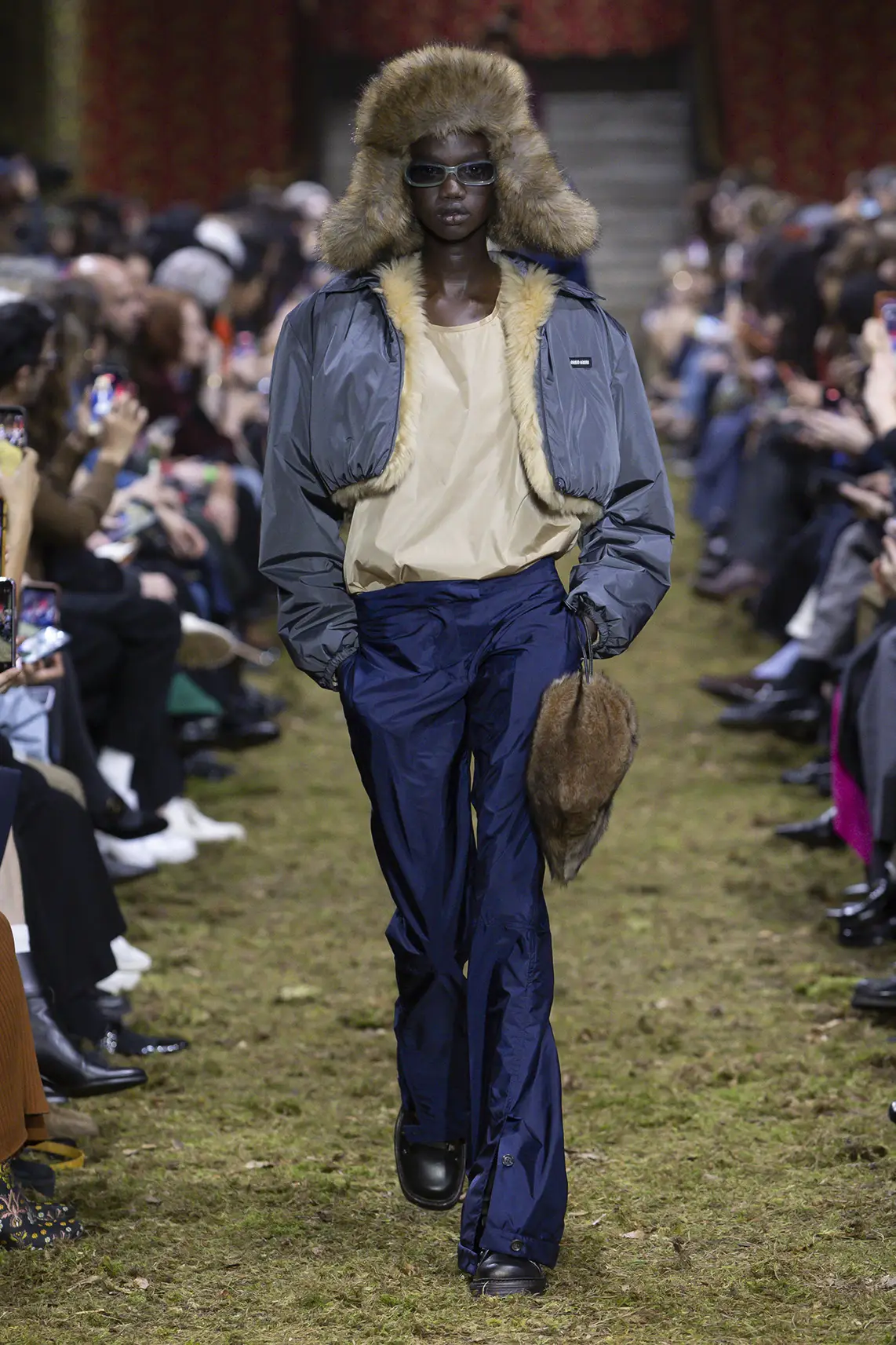 The AW26 Miu Miu show took place inside the Palais d’Iéna, where the scenography unfolds as a wild forest contained within a palazzo — two panoramas colliding in the same space. The setting immediately suggests magnitude, something immense, both cultivated and untamed at once.
