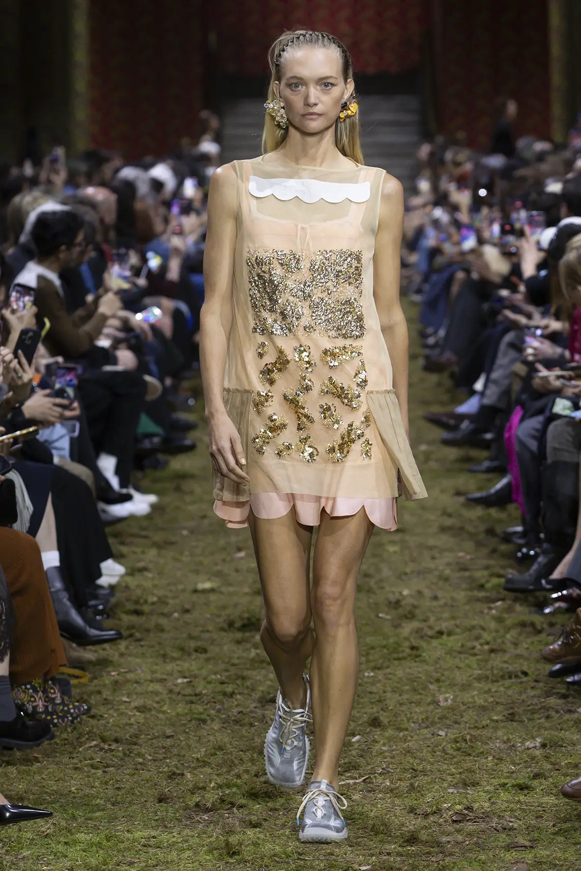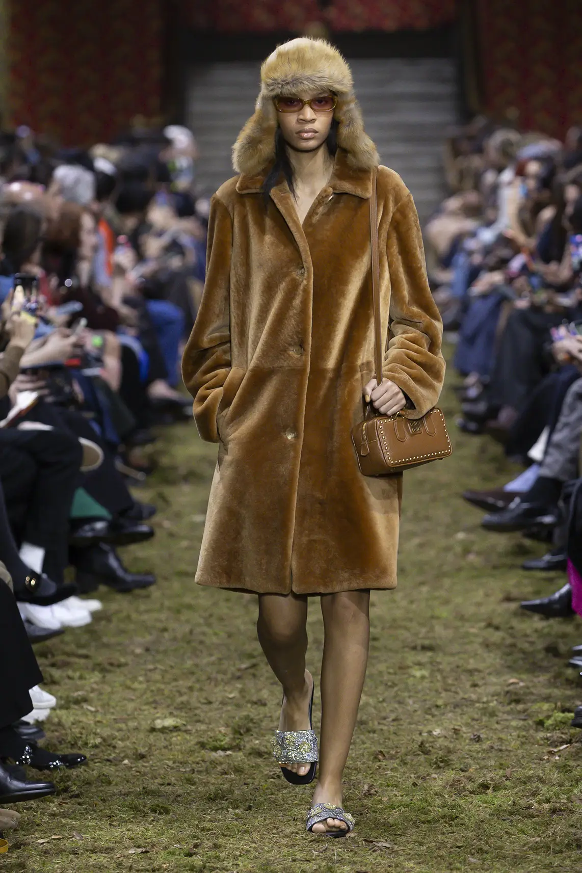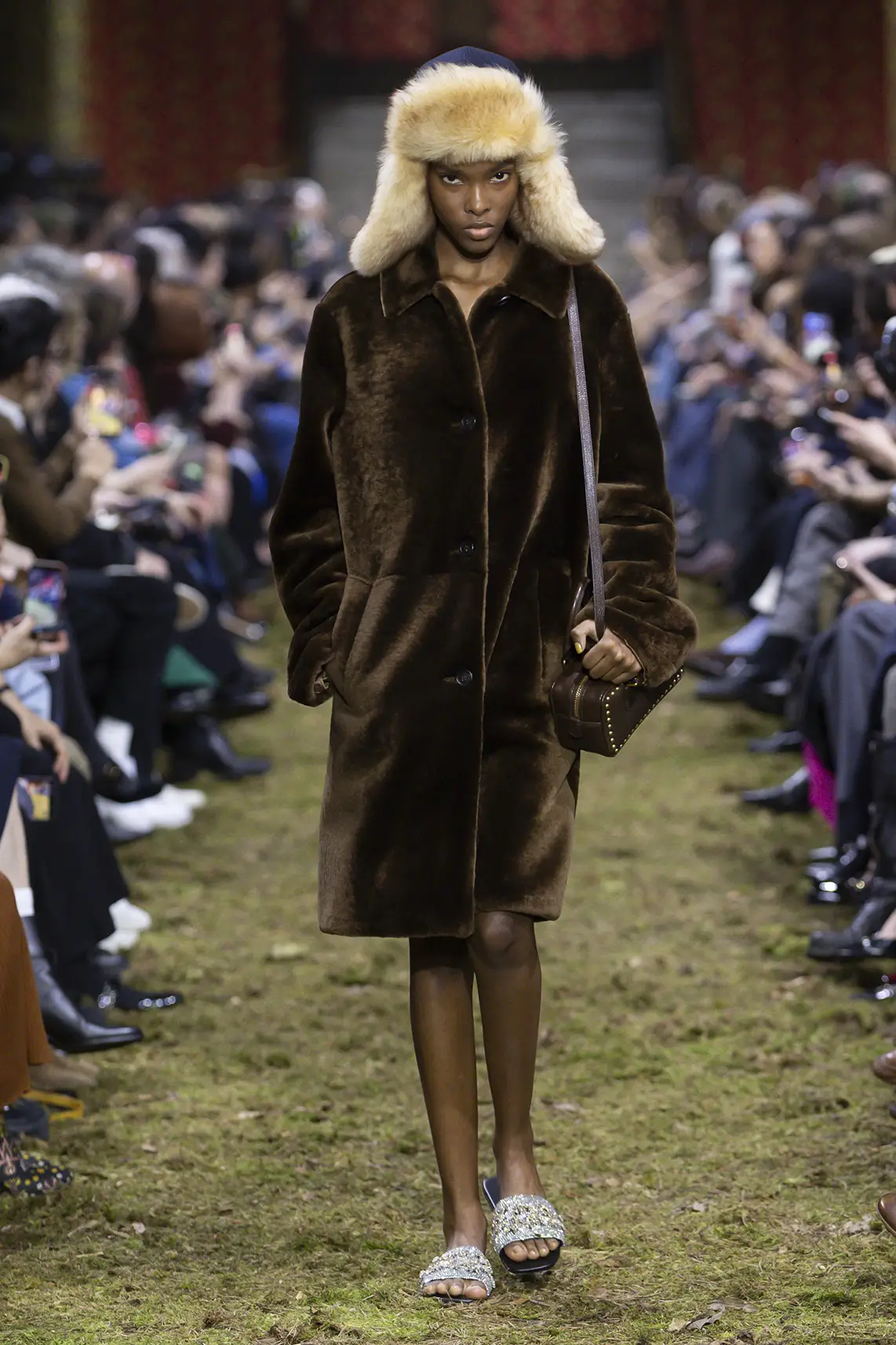 The AW26 Miu Miu show took place inside the Palais d’Iéna, where the scenography unfolds as a wild forest contained within a palazzo — two panoramas colliding in the same space. The setting immediately suggests magnitude, something immense, both cultivated and untamed at once.
