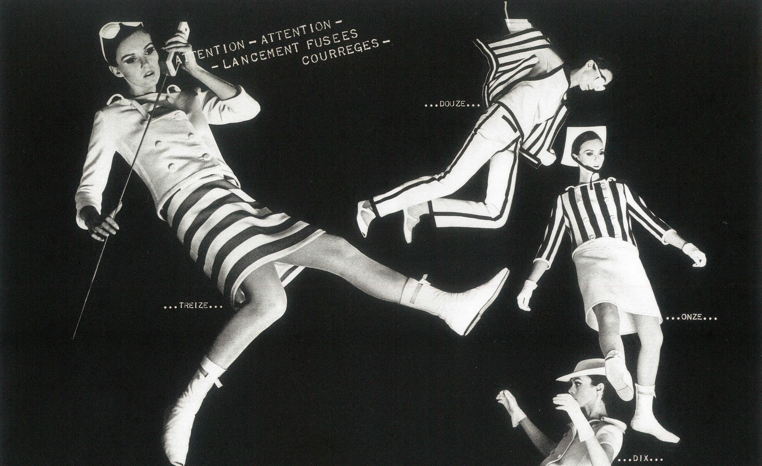 Dubbed the “bombe Courrèges” (Courrèges bombshell) by the press, this collection was a revolution in thefashion universe. Peter Knapp was there to photograph it—with complete creative freedom! In the March 1965issue of ELLE (No. 1002), the photographer presents this new Courrèges woman through an elliptical series,making his models appear to float, suspended in space. This series forms the heart of the exhibition, featuringfour large prints completed by other series, archival materials, and outfits photographed by Knapp in 1965,generously loaned by the House of Courrèges.
