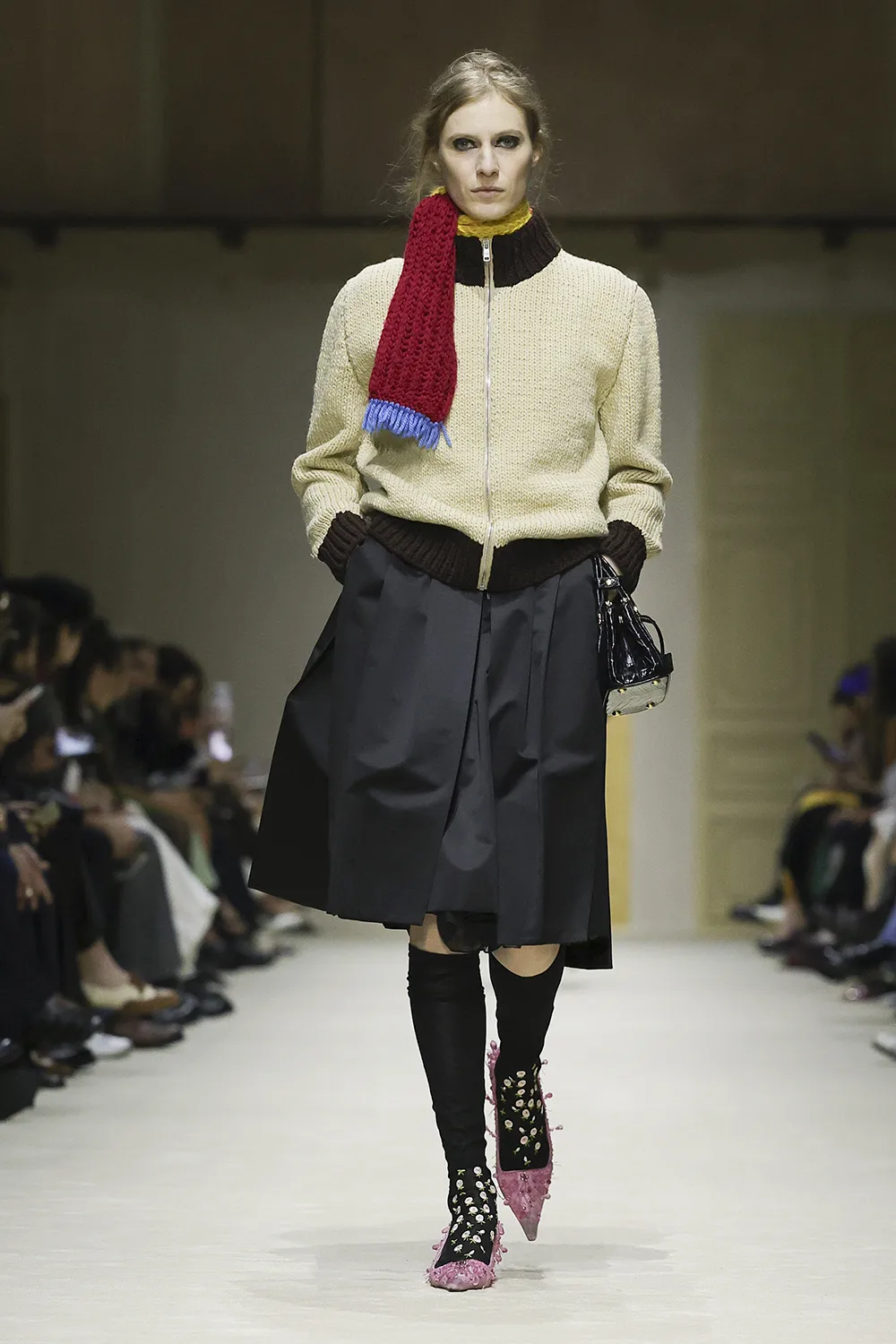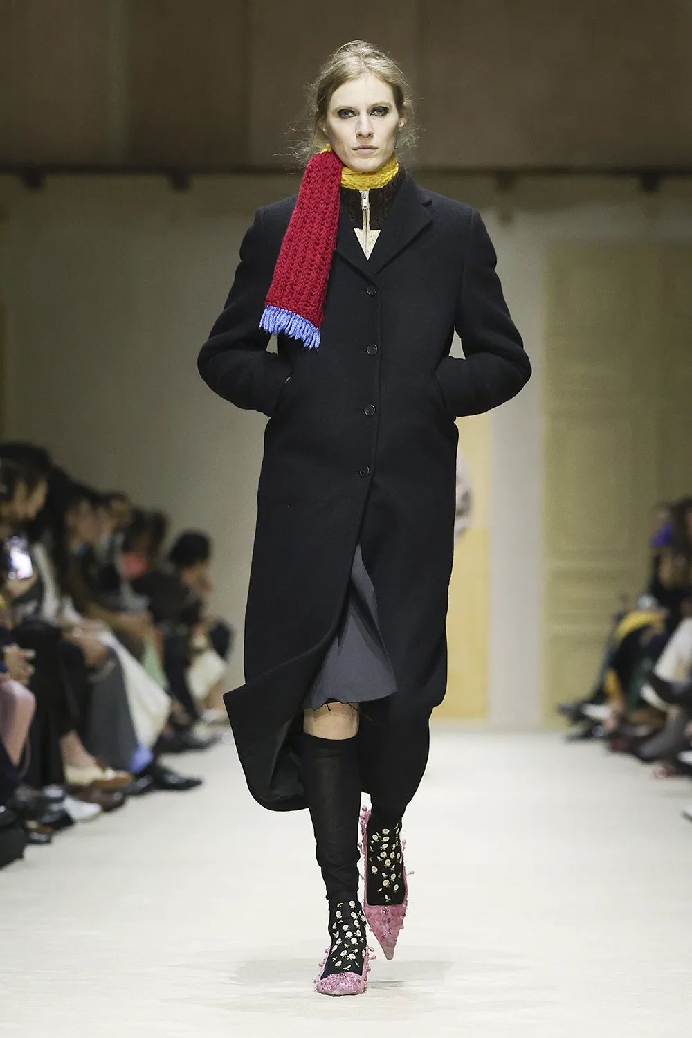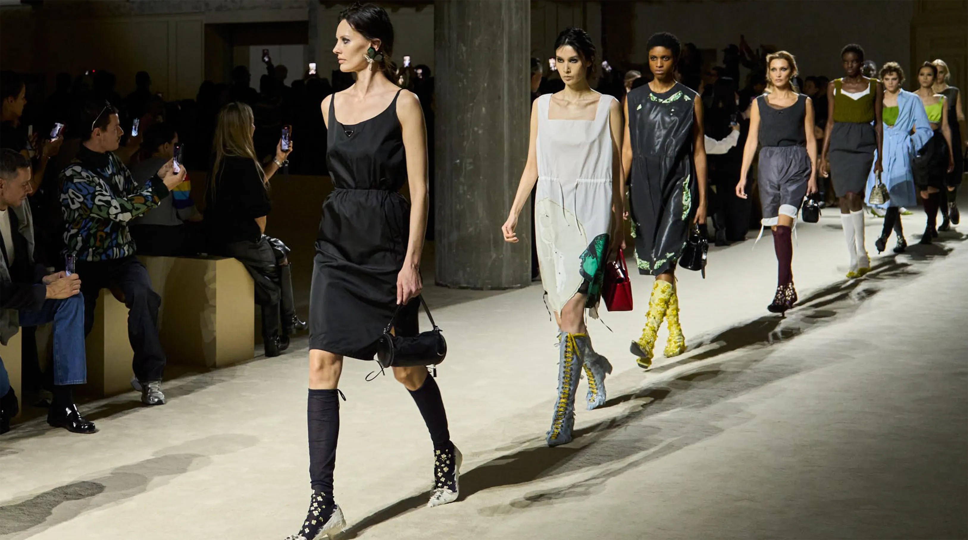 The show took place in the Deposito of the Fondazione Prada is populated by original artworks, significant furniture and objects: tapestry and a painting from the 16th and 17th centuries, an 18th-century Venetian mirror and consoles; chairs, lamps, and paintings from the 1900s. These artefacts span five centuries, divergent cultures, different places. Like the clothes, their meaning is layered, inherently personal, intimate, and filled with ceaseless possibilities.