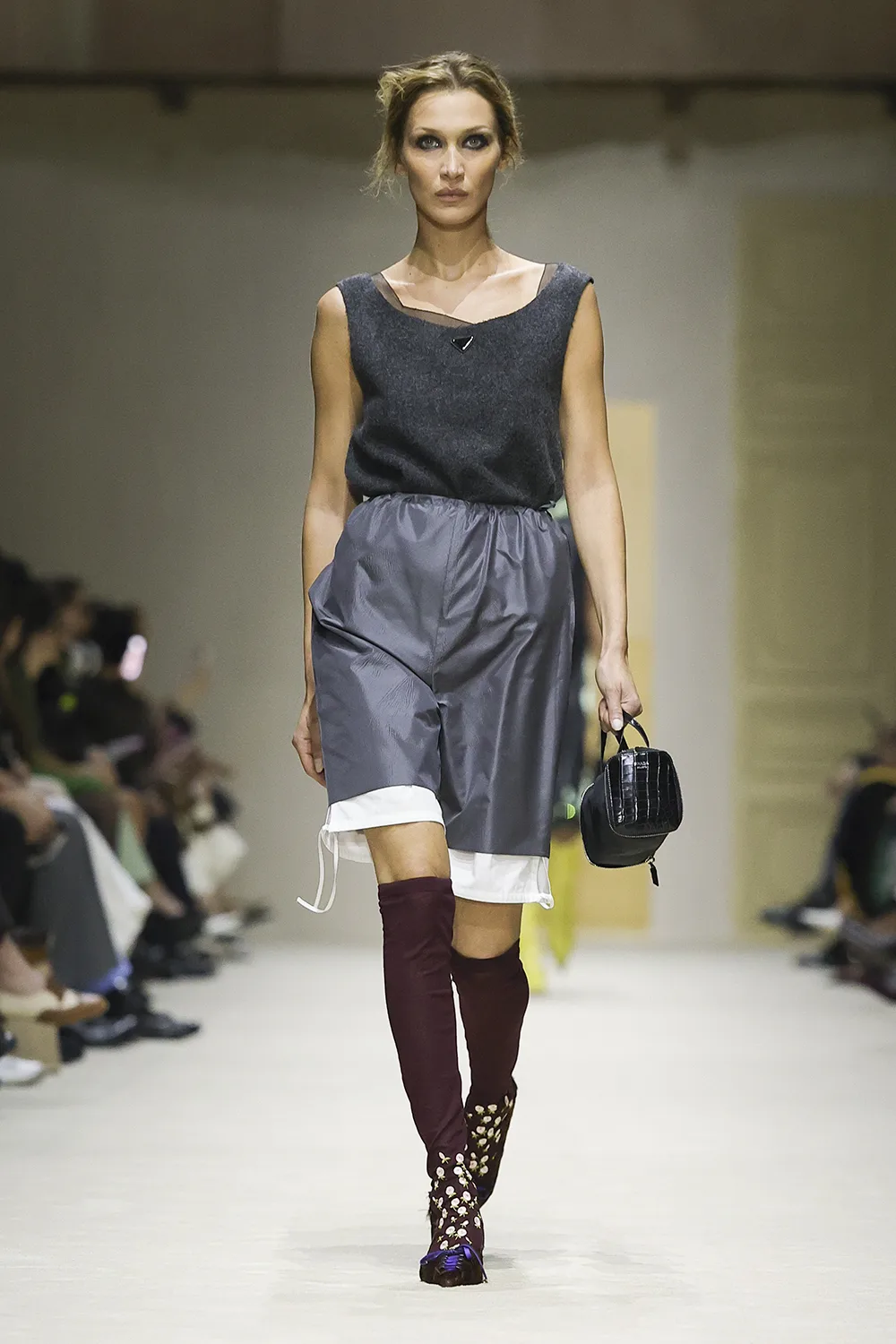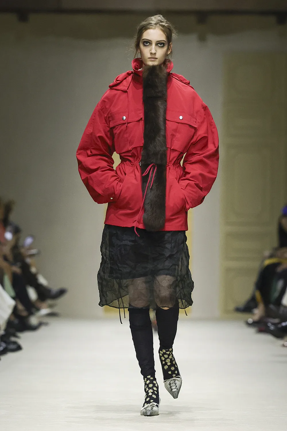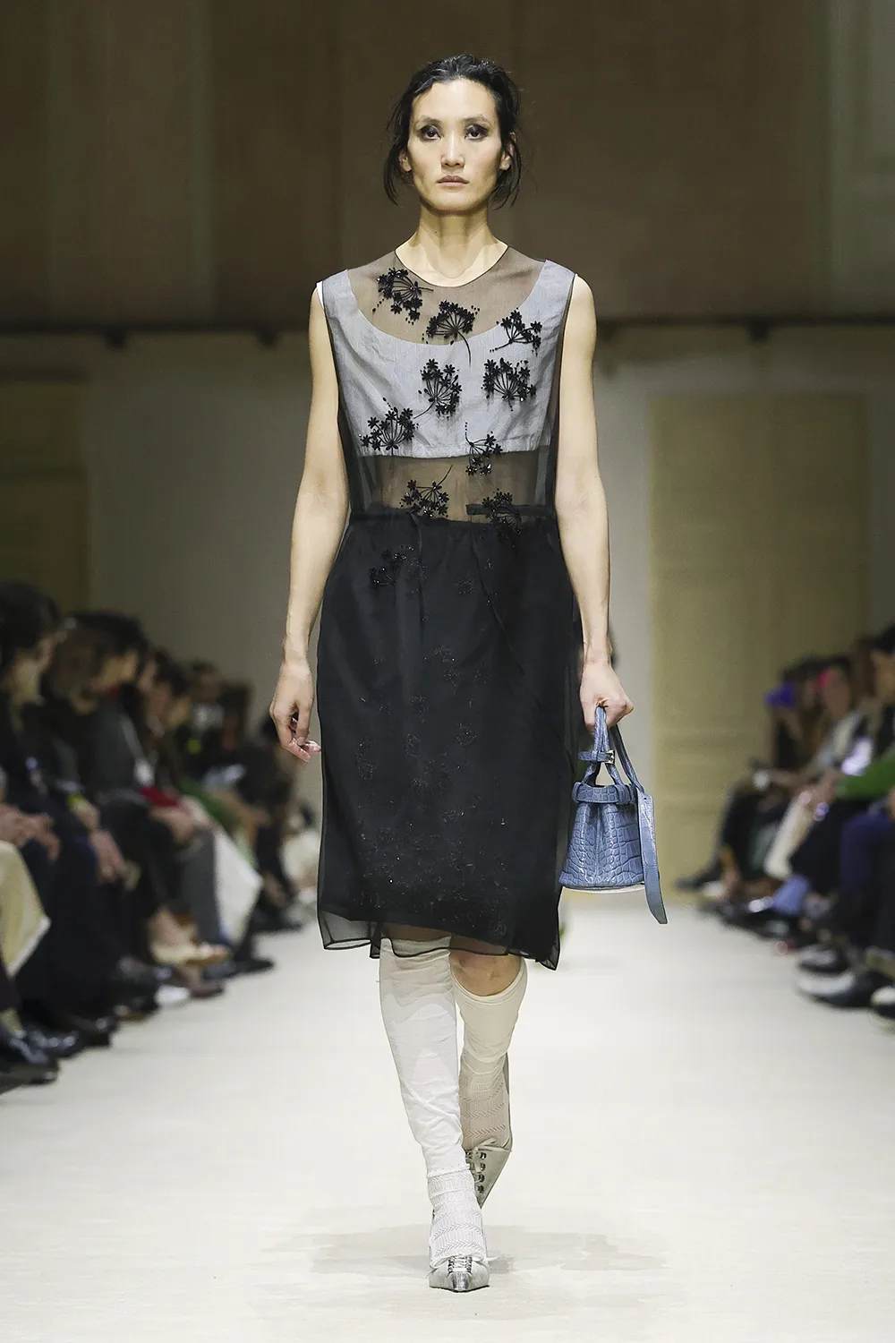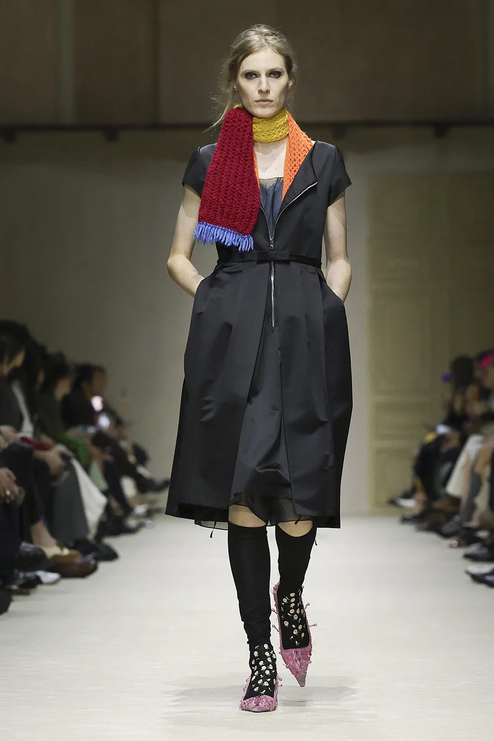 The show took place in the Deposito of the Fondazione Prada is populated by original artworks, significant furniture and objects: tapestry and a painting from the 16th and 17th centuries, an 18th-century Venetian mirror and consoles; chairs, lamps, and paintings from the 1900s. These artefacts span five centuries, divergent cultures, different places. Like the clothes, their meaning is layered, inherently personal, intimate, and filled with ceaseless possibilities.