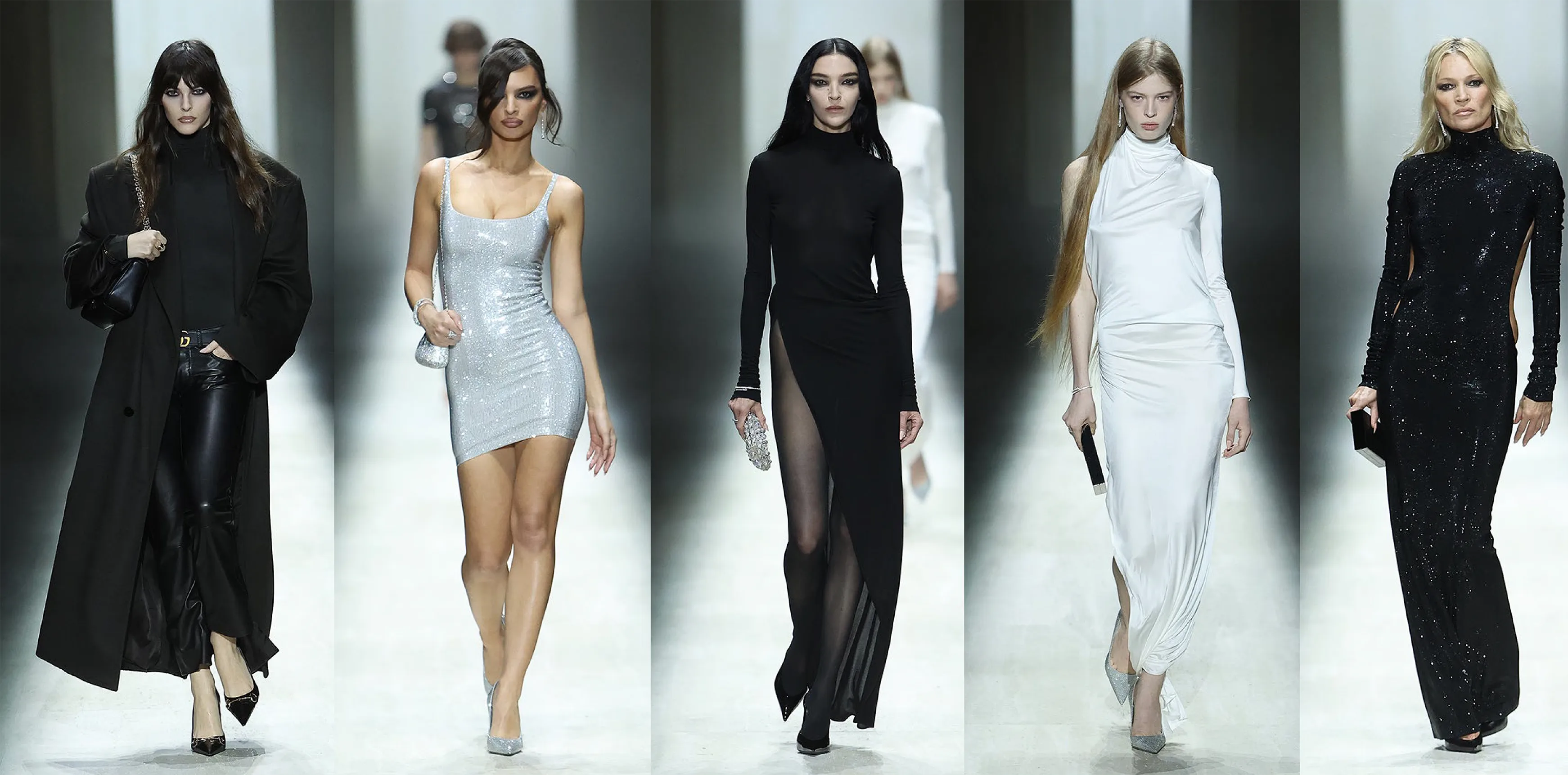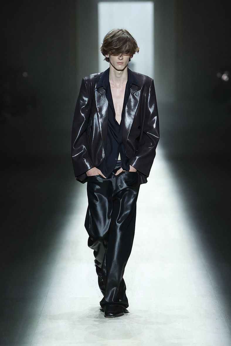 It opens with the ultimate seamless minidress in white hosiery fabric, worn with a femme fatale attitude; a palate cleanser. Proposing multiple modes of dressing, the same jackets are worn with skirts, legging-pants, and trousers, from the office to the bar and in between. Easy, fluid tailoring is cut in ethereal, liquid-like fabrics, lent a streetwear sensibility by low-cut jackets and trousers with horizontal pockets that give you a specific posture.